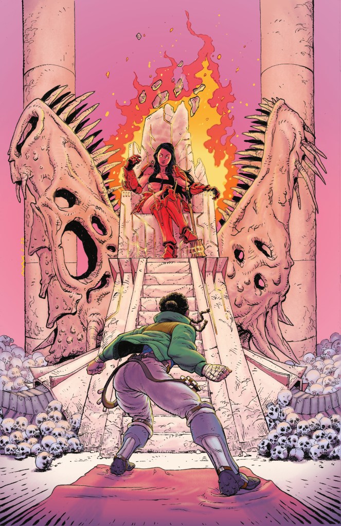 Tyrant Fall #1 is the extra-sized, full color premiere issue of a sci-fi/fantasty action epic, drawing inspiration from the pages of DragonBall Z and Heavy Metal Magazine, as well as Dungeons & Dragons and other fantasy roleplaying games. It’s 30 pages of kick-ass action set in a world of war-driven technologies and arcane magics.